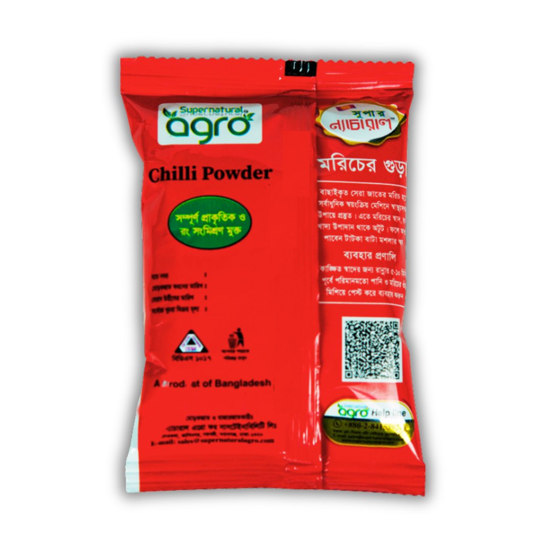 Bring the fiery touch of purity to your kitchen with Super Natural Chilli Powder. Made from 100% sun-dried, hand-picked Bangladeshi red chillies, this spice is ground using state-of-the-art hygienic processes to retain its vibrant color, intense aroma, and natural heat.